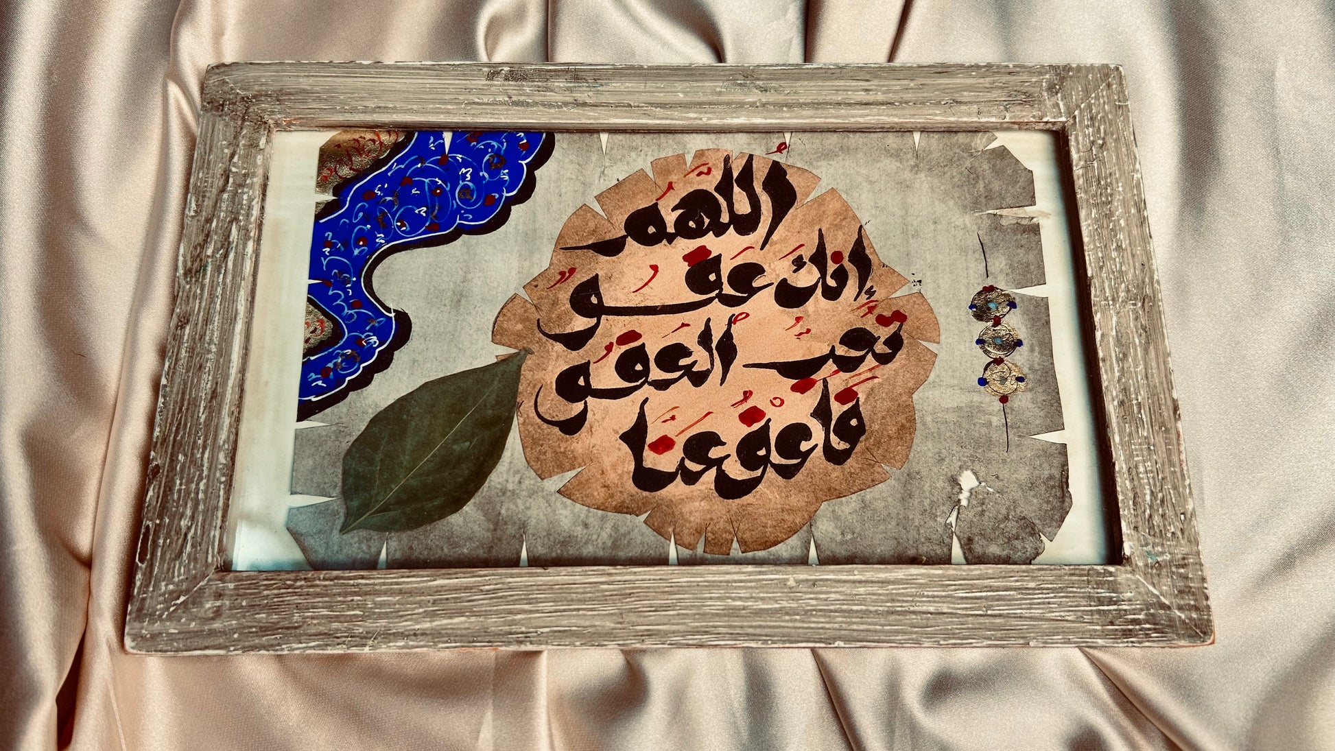 "اللهم انك عفوا تحب العفو فاعف عنا" Frame: This gentle piece is a quiet reminder to seek kindness anي forgiveness ALWAYS .